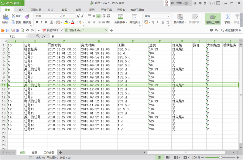 最后,甘特图就被导入到Excel表格中了,还可以直接在Excel中再次编辑修改里面的信息,十分的方便。