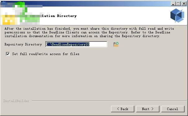 3、设置安装目录,默认安装在“C:\DeadlineRepository10”