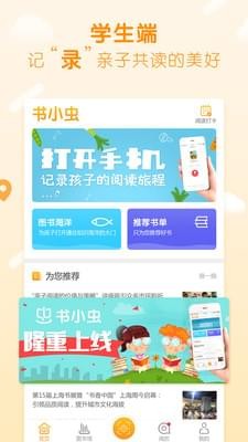 书小虫app是融阅读管理、阅读指导、阅读活动、知识训练、亲子共读等功能为一体的家园共育智慧化阅读平台,专注提升孩子阅读品质,针对3至6岁儿童设计。书小虫app绘本书单由出版届大伽、学者、幼教专家结合学龄前儿童特性精心挑选,可满足孩子各心理发展阶段的需求。在书小虫app孩子不仅可以把绘本借回家,还可以借助线上的绘本攻略与家长进行亲子阅读,实现借阅、导读、记录、分享等功能。
