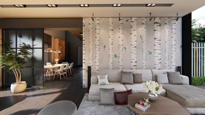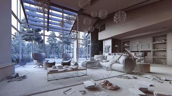 这些具有精细纹理贴图的材料是观众“触摸”墙壁,“闻”起居室沙发皮革,“听到”在地板上移动的脚步声.