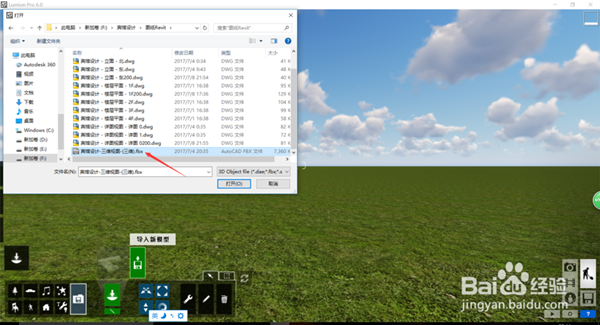 在弹出的文件浏览窗口,我们可以选择我们需要进行处理的模型文件,Lumion以FBX文件为主要的模型导入文件,多数建筑软件都可以导出FBX模型文件.