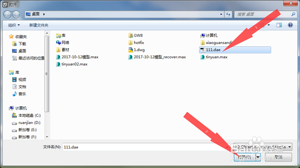 然后找到你导出dae格式模型位置 选择打开
