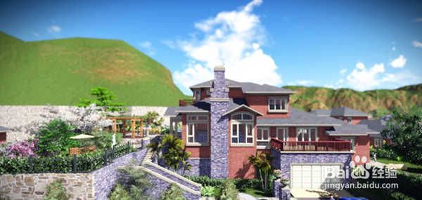 模型放置完成后,光影效果Lumion会自动进行添加,我们只需要对建筑增加材质,即可非常快速的获得效果图.