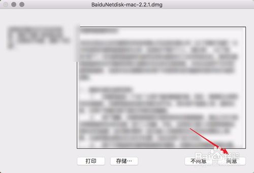 1、下载完毕后点击dock上面的下载目录,找到一个baidu拼音的dmg文件点击它,然后会弹出图二的菜单选择同意。