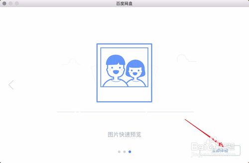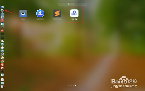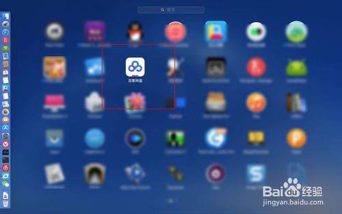 3、点击dock上面的启动台图标找到百度网盘图标点击一下启动它,接着在图二点击下一步。