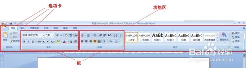 与Word2003相比,Word2007最明显的变化就是取消了传统的菜单操作方式,而代之于各种功能区。在Word2007窗口上方看起来像菜单的名称其实是功能区的名称,当单击这些名称时并不会打开菜单,而是切换到与之相对应的功能区面板。每个功能区根据功能的不同又分为若干个组,每个功能区的所拥有的功能如下所述:“开始”功能区