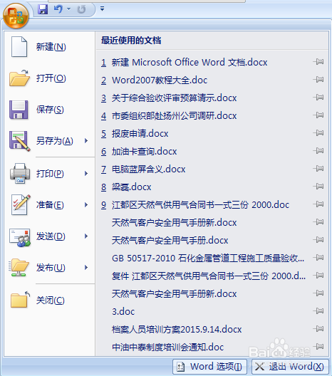 Microsoft Office 2007改变了部分文档的格式,Word文档的默认保存格式为“.docx”,改变格式后文档占用空间将缩小。