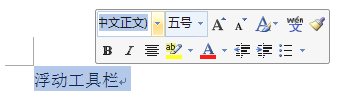 该工具栏中包含了常用的设置文字格式的操作(如设置字体、字号、颜色、居中对齐等)。将鼠标指针移动到浮动工具栏上将使这些操作按钮完全显示,可以方便地设置文字格式。