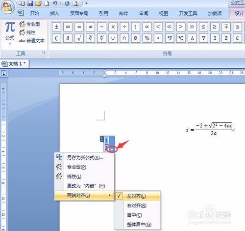 显示公式后单击小虚框后输入数字,可以单击三角形处,选择对齐方式,如左对齐,默认是整体居中。或文字一样选择对齐方式。