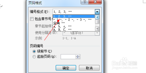 在编号格式中选择想要的样式,在这我选择常用的1.2.3