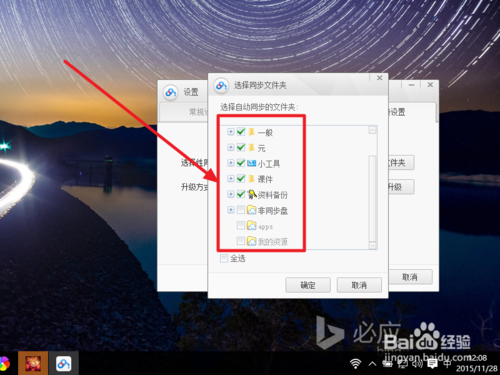 5、下面就给自己想要同步的文件夹打上勾确定就可以