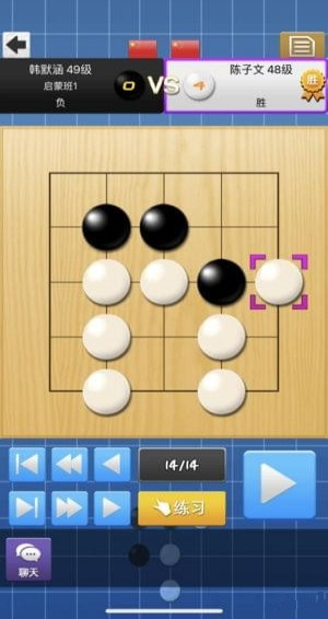 “吃子游戏”孩子会通过爱思通围棋上这个有趣的游戏,自然地熟悉提子、禁着点、假眼、死活、边界线、确保领土等概念。让零基础的孩子尽快适应短兵相接,熟悉围棋的基本规则。