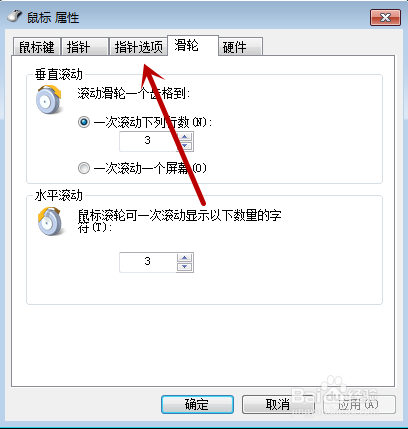 之后我们可以打开一个鼠标属性窗口,我们点击上方的”指针选项“,如图所示。