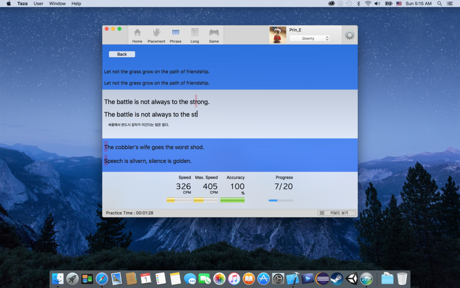Taza Mac版内置Sonagi,一个类似于Venezia的游戏,可以提供给你快速输入单词并取得高分的技巧,把你学习练习的分数上传到网上,来查看你的学习排名。