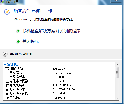Windows 7应用内点击番茄统计、清单动态或任务动态报错