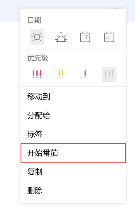 在任务列表右键菜单中开始番茄,或者点开任务详情页右下角菜单中开始番茄即可。