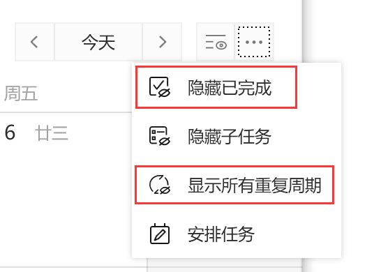 日历小部件如何隐藏已完成任务,如何显示重复周期任务?