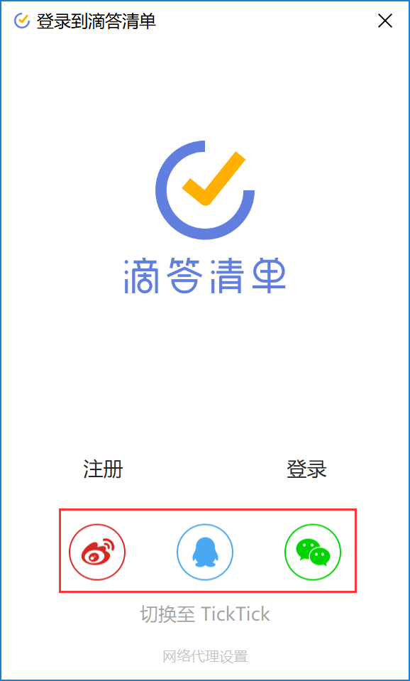 滴答清单目前支持微博、QQ、微信三种第三方账号的登录。
