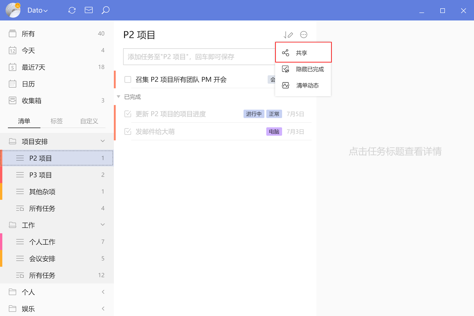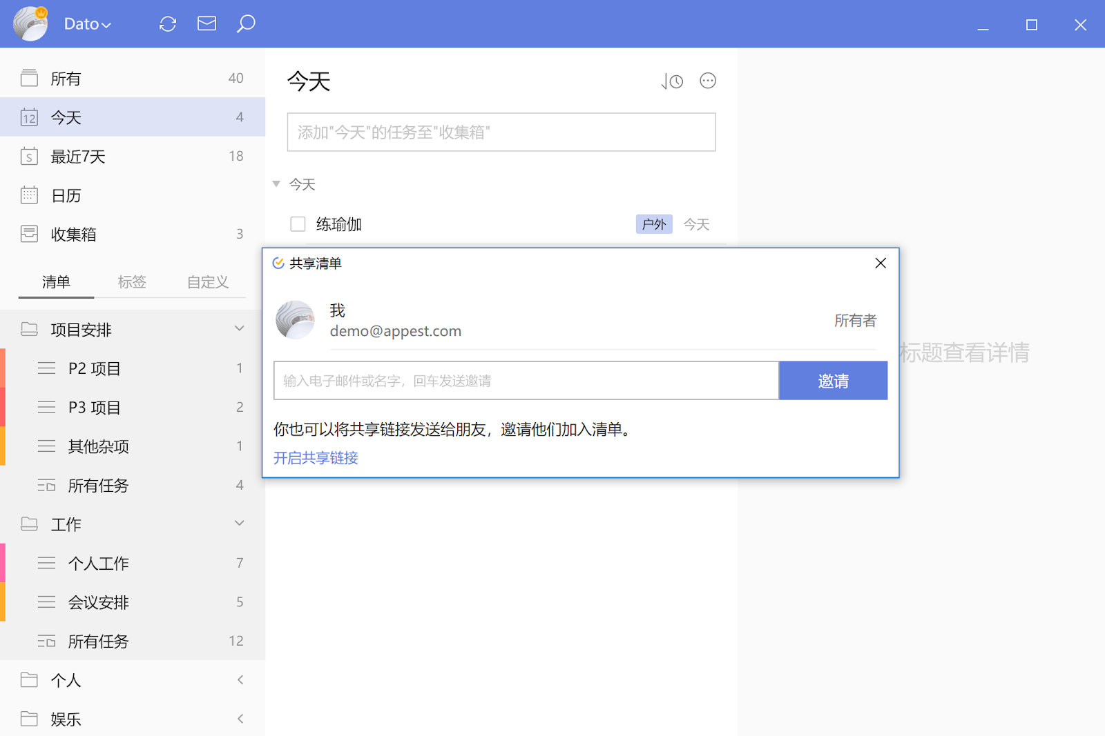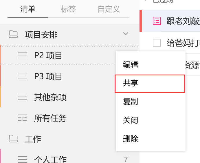 您可以通过共享功能,将自己的清单与其他人进行共享,协作完成任务。