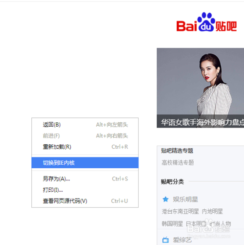 点击鼠标右键,然后点击【切换到IE内核】就可以成功切换成兼容模式了。