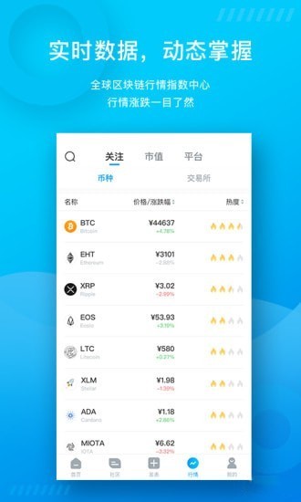实时行情 - 数字货币行情秒级刷新,行情涨跌,实时掌握;