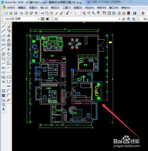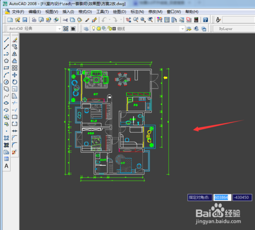 cad2008怎么导出pdf?1、如下图所显示出来,这里是画好的平面布置图。