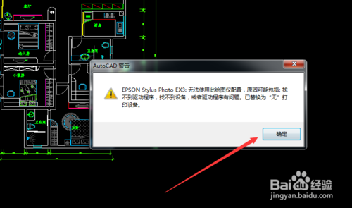 3、出现cad警告,单击确定进入。