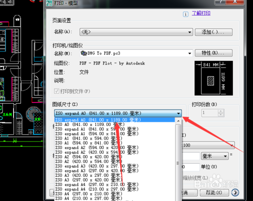 5、在图纸尺寸上选择如下参数。