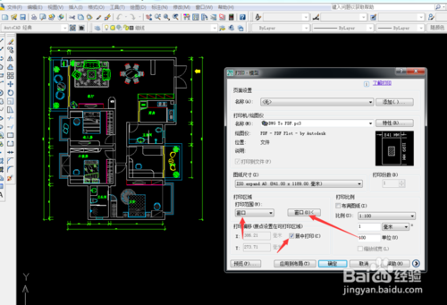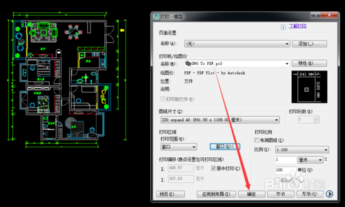 7、可以看到要选择打印的范围,选择-平面布置图。