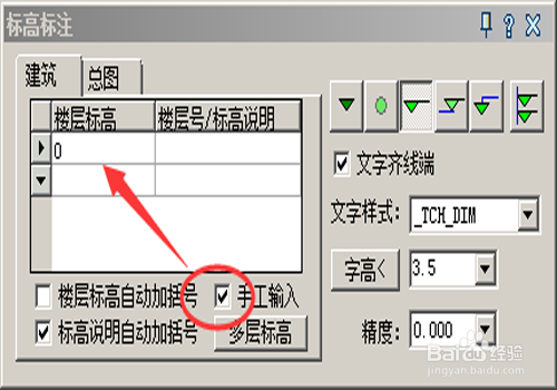 点击手工输入,然后点击楼层标高中输入0。
