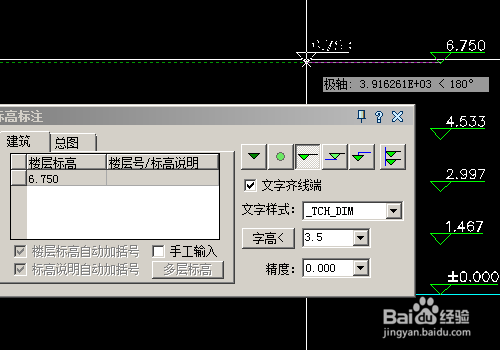 6、要修改已经标注好的标高标注可以直接双击左键进入编辑。