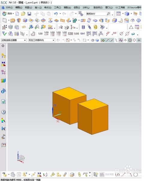 1.打开ug,新建一个建模文件,利用草图拉伸命令,拉伸两个方块实体。