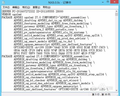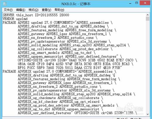 6.用记事本打开NX8.0.lic。