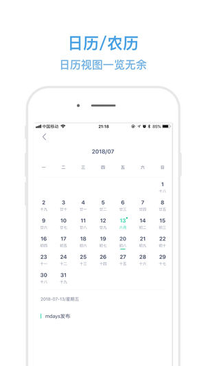 基本的节点记录功能外,还有天数计算、日期推算等相关功能。还可以生成精美图片,多渠道多方式转发分享,是一款简洁美观、小巧实用的日期管理app。