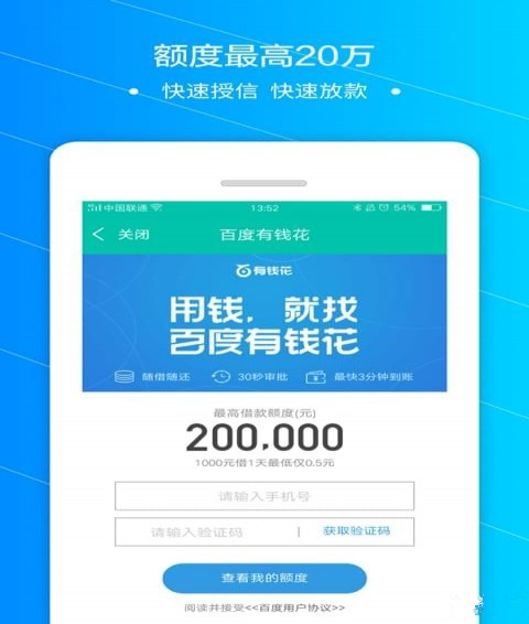 极速放款:1分钟提交,10秒授信,1小时快速到账;