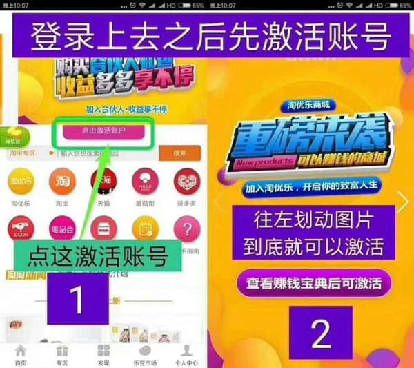 3.打开淘优乐APP点个人中心登录上去~点激活账号(激活账号是免费的)