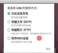 3、安卓手机必须选择MTP模式或者MIDI设备模式