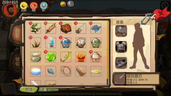 (逐个升级) 木棍>匕首(1级车间)>猎刀(2级车间)>双刃猎刀(3级车间)>旋风猎刃(4级车间)