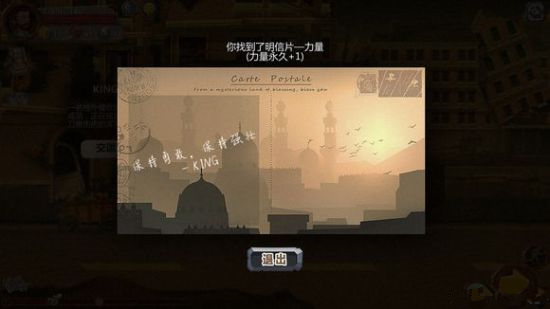 疯狂点击鼠标左键取胜之后会获得KING的明信片,力量+1.