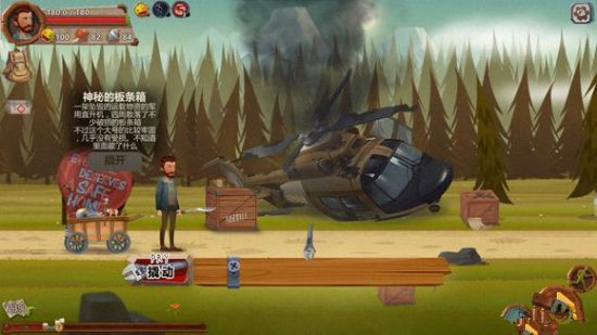 行走时会遇到坠落的直升机,主角也会说话提示玩家,直升机前有很多箱子可以补充一波材料。有一个名称为【神秘的板条箱】的箱子,打开方式与正常箱子无异。