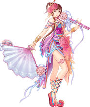对舞蹈极有天分,舞姿曼妙、步步生花、浑然天成。原跟随商团四处表演维持生活,后在一场表演中,因气质出众,才貌过人,得到曹操喜爱,被曹操收为义女,长住京城,更在京城流传着“百花姬”的封号。