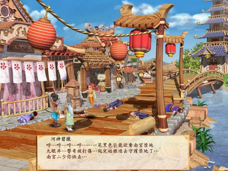 刚迈入成都,地震又来了,询问得知,一只黑色吃人的大怪物来到了,众人立即往南宫禁地方向奔去.来到碧徽河畔,南宫响和河神碧徽也被打到在地.冲进南宫禁地,众人终于知道了敌人的真实身份-九龙之一的螭吻!有身孕的公孙宛儿既已中毒,已无时间再拖延,南宫毓果断决定-放弃九眼井!随着井水的消失,螭吻满意的离去,留下一只千年蜘蛛精与大家对峙.