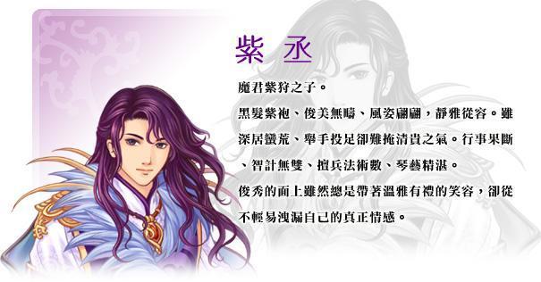 人设方面一贯是系列的一大亮点,该作更是给人画龙点睛般的惊艳感觉。且不说主角紫丞集帅、酷、沉稳、温柔、地位、抱负以及迷离的身世等一切能牢牢吸引女玩家的要素于一身,其余角色也刻画得可圈可点,比如鹰涯的高手风范,容仙的楚楚可怜都表现得很含蓄也很到位。