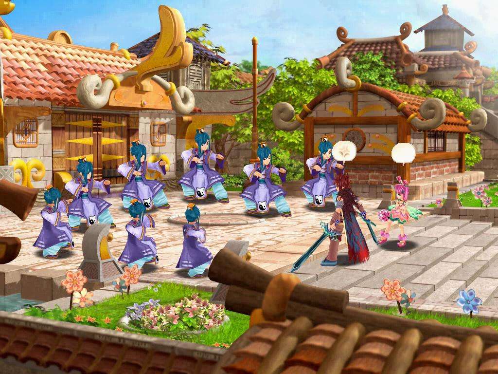 该作秉承了系列前作的优良传统,场景采用了绚丽的色彩,乍看有些眼花缭乱的感觉,实际上细看之下你会发现房屋、楼阁的比例以及色彩搭配都很有讲究,一种古典神话风情跃然眼前。