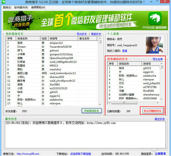 微信猎手软件在找出把你删除的好友之后,它不会立马就删掉她们,而是把她们标记出来,让用户自己手动审核删除,这一点充分避免了软件误删的可能性。