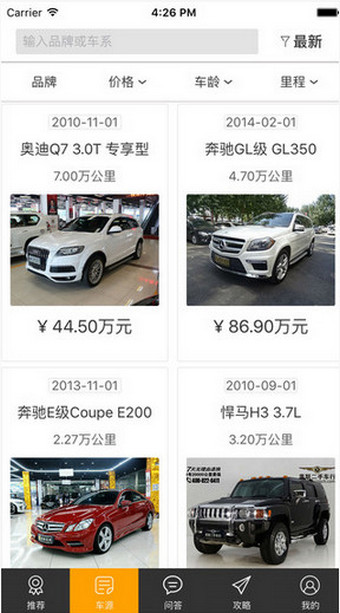 推荐:为不同需求用户整合车源,让您在选车时有更多选择;车源:数万车源实时发布更新,保障车源让您选车更轻松;
