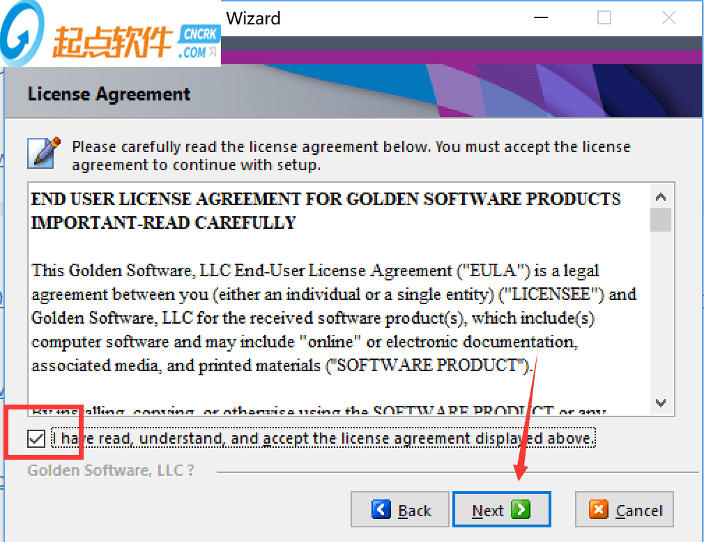 3.选择我已经阅读协议并接受,点next