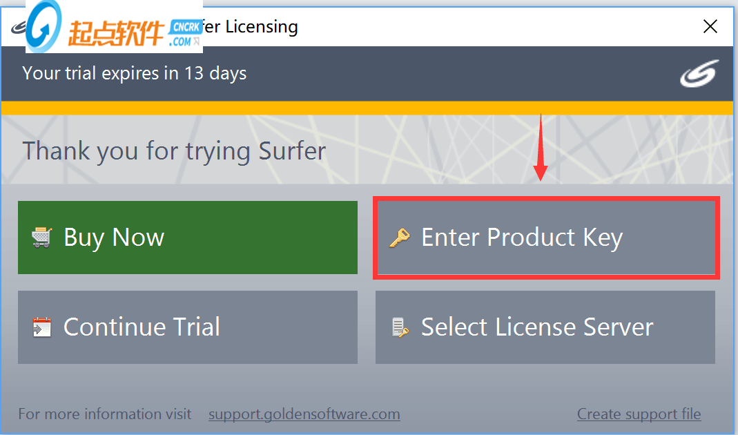 11.选择下面的 i have license file,选择压缩包内surfer.lic