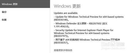 进入后左边菜单选择<windows更新>,右边就可以看到能更新的包了,9926版本才出没多久,就有新的补丁啦,看来win10今后的补丁数量还是不会少。