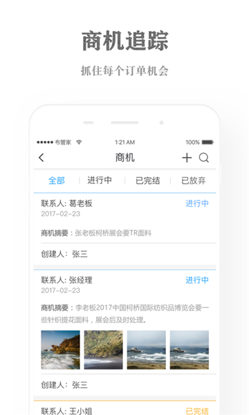 样品管理:快速添加,编辑,查找样品,轻松管理样品,再也不怕找不到。快捷推样:一键将样品推送给客户。自动生成页面,随时随地分享。